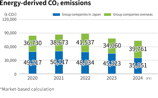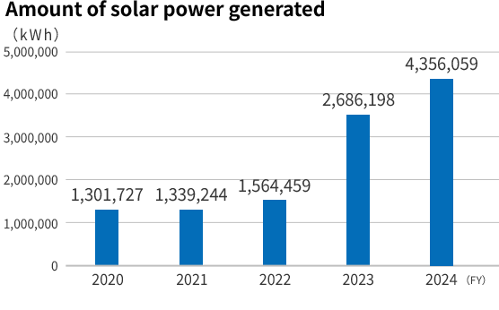 In the fiscal year in question, we reduced greenhouse gas emissions by 7.1% compared to the previous year. Specifically, the introduction of renewable energy accounted for a reduction of 3,656 tons of CO2, and energy conservation activities contributed to a further reduction of 2,707 tons of CO2.