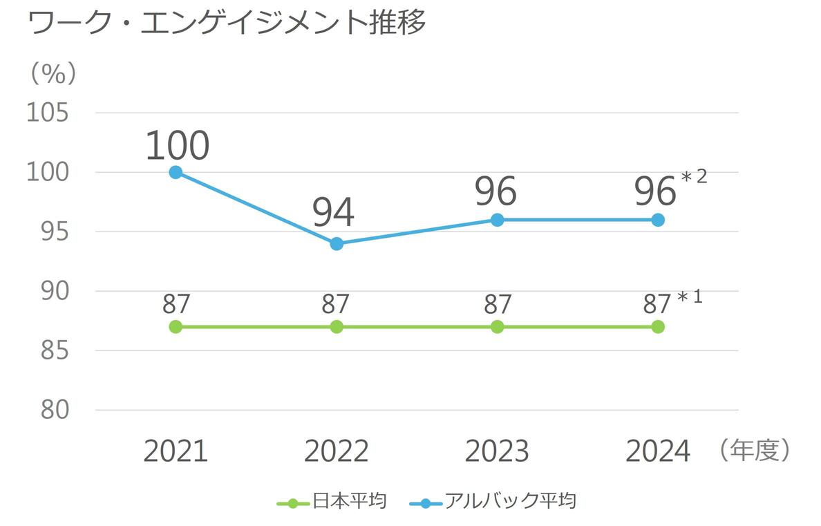 *2 アルバックの従業員が健康診断申込時に回答したUWES-9の調査結果の2021年度の値を100%としたときの数値