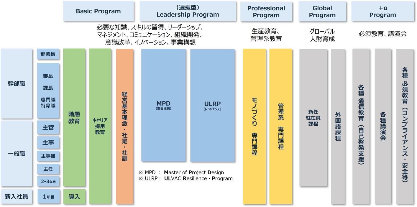 アルバックでは中核人財の選抜・育成にあたっては、社員構成を踏まえた目安を設け、多様性を確保しながら、バランスの取れた選抜・育成を推進しています。また、中核人財の登用においては、特定の属性にとらわれず、個人の能力を基準とした公正な評価・登用を行っています。